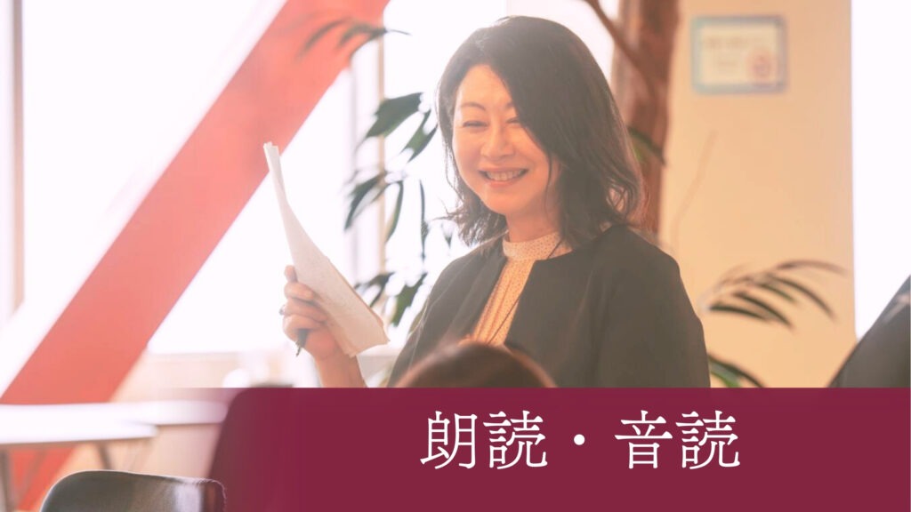 黙読、音読、朗読、読み聞かせ、これらを四つの読むといい、それぞれのシーンや誰に対して読むかでその表現は変わってきます。